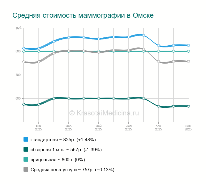 - Маммография (обзорная 1 м.ж.) ~ 567р.7 цен