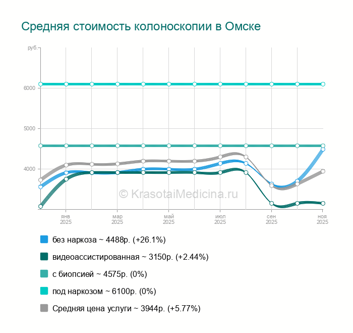 - Колоноскопия (под наркозом) ~ 6 100р.2 цены