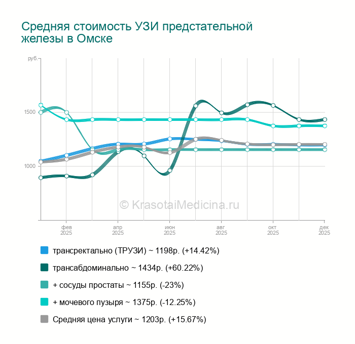 Сделать УЗИ предстательной железы в Омске можно в 89 клиниках. Средняя цена - 1211р. (-2.89% за последние 3 месяца). Всего найдена 151 цена от 230 до 4000 руб.